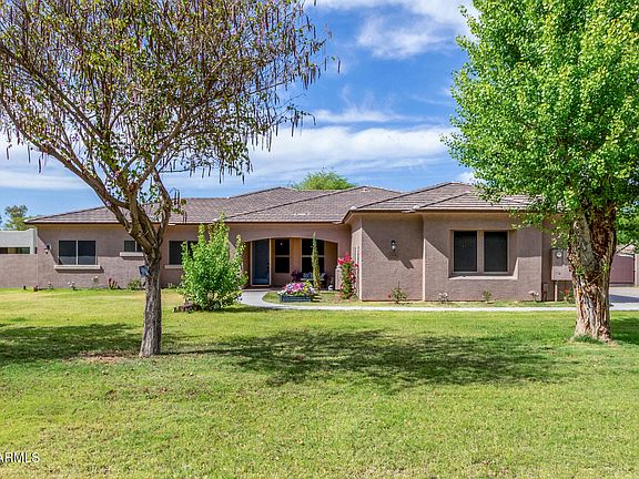 Stunning custom home situated on a 1 acre property with flood irrigation & horse privileges. Fully remodeled gourmet chef's kitchen featuring high end Euro style double stacked cabinetry with soft close doors & drawers, quartz counters, AGA Mercury 48'' range with double oven & induction glass cook top, pot filler, a vast island with bar seating, secondary prep kitchen, 2 large farmhouse sinks & dual dishwashers. Spacious master bed/bath, direct entry to patio, walk in shower. 2 closets. Remodeled 1/2 & secondary baths, fully remodeled laundry room, soaring ceilings, 8' interior doors & travertine stone flooring. Sparkling pool with a sheer decent waterfall, in floor cleaning system, Baja step & travertine paver decking. Extended length 3 car garage, RV gate & lots more. See upgrades list