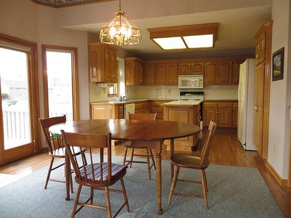 A lovingly cared-for 1.5 story home with master bedroom on the main level! Home has steel siding*large wrap-around front porch*new hi-eff. HVAC system*newer H20 heater*spacious kitchen with lots of counter-tops, cabinets and kitchen island*large main level laundry room*incredible work space in basement & outside access*HUGE LOT! 3rd garage is in lower level. House has space in the basement for multiple cars! Great space for a hobby area.