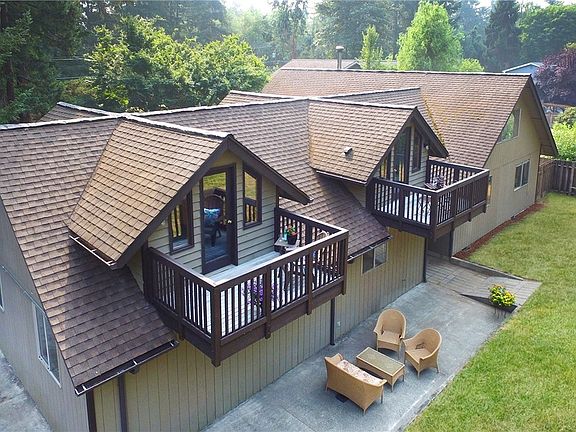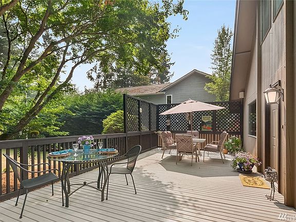 A home for all seasons! Imagine a home with solar panels to lower the cost of heating and cooling; add a heat pump for extra efficiency; and include a flexible floor plan that will adapt along with your changing needs. It's all here, waiting for you! There's so much to love about this terrific home. The great room has soaring ceilings and a wood stove, with a dining bar off a kitchen that overlooks the large front deck. Two bedrooms, 1-3/4 baths, and utility room are on the main level. The upper "loft" is devoted to a light-filled bedroom suite with a full bath and two private lanais, plus a big, versatile bonus room. The attached double garage is heated and has a shop space so you can use it year round, and a covered breezeway provides all-weather access between the front and back yards. A big wrap-around patio is in back, with a sunny, level, fully-fenced yard that has plenty of room for gardening or entertaining. The property is just under a half acre in a well-established, quintessential Northwest neighborhood surrounded by trees. Schools, shopping, and ferries are at your fingertips. You'll love it here!