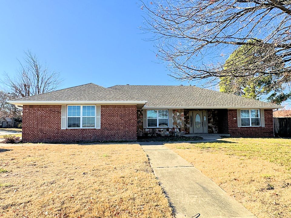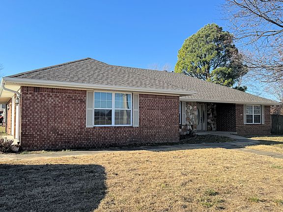 Large, open living room with fireplace, vaulted ceiling, breakfast nook on one side and dining room on the other. Master bedroom has a tray ceiling to give it additional height and a sense of spaciousness. Master bedroom has sinks and walk-in closets on opposite sides, with a central area for the shower, tub, and toilet. Kitchen is open to breakfast nook and has a doorway to the formal dining room. The laundry room is off the kitchen area and has ample storage. Remaining 2 bedrooms are in another wing, and share a full bathroom with a large supply closet, the hallway between the bedrooms also has a linen cabinet. Entryway/foyer has a coat closet. Backyard is a good size, fully fenced. Front yard faces a massive pasture with an area of landscaping/trees. The neighbors are wonderful and the area is within walking distance of grocery stores and other conveniences.