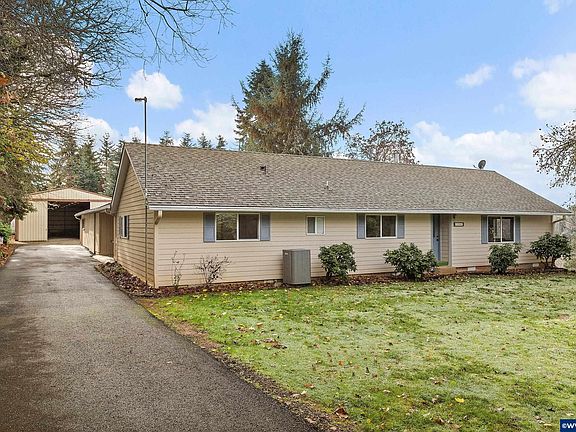 What can you find in a great South Salem location for under $500,000 with peace, privacy and property? Check this one out! Very clean and well maintained manufactured home with 3 bedrooms, 2 baths, 2 dining areas, large living room, covered atrium and patio with many windows to encourage southern light exposure. 700 SF attached woodshop and massive 2520 SF pole barn shop with easy access along paved driveway. Back of property is an old Christmas tree farm providing a park like setting that wildlife enjoy. Some amenities include newer roof and furnace over house, carport and shop area. Carport could easily be finished off to an enclosed garage space if desired. MFH is a 1975 Guerdon Camelot #450 measuring 64' x 24' and has never been moved. Beautiful sunset views to the West as this sits upon the hillside. Welcome Home!