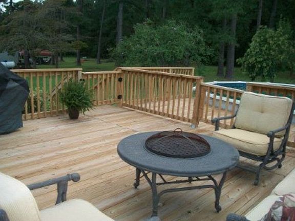 Home is in move in condition. Updated kitchen with tile flooring, breakfast bar and large dining area. Curtains in the kitchen will remain as well as the refrigerator. Hardwood floors and owners believe hardwoods under the carpet in the bedroom. Updated carpet in bedrooms. Both bathrooms have been updated. Large glass shower in the master bathroom. UV air unit on HVAC system to keep out mold and mildew. Above ground salt water pool 20x24 deck, 4 ft pool. New insulated windows and roof is approx 5 years old. Wired storage building.