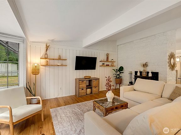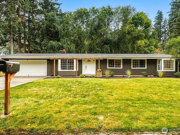 Beautifully updated rambler on a spacious ½ acre lot in the heart of Smokey Point! This 3-bedroom + office, 2.5-bath home features a bright open-concept living area with vaulted ceilings, fully remodeled kitchen and bathrooms, and modern finishes throughout. The large primary suite includes a walk-in closet and ensuite bath, while another bedroom also enjoys its own private bathroom. Recent upgrades include a newer roof, tankless water heater, and energy-efficient mini-split for updated heat & AC. Step outside to a huge covered patio, flat yard perfect for play, gardening, or space to expand. Don't miss the detached backyard office. Just minutes from shopping, dining, and I-5, this move-in ready home blends comfort, convenience, and space!