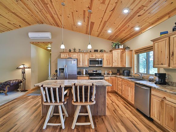 Don't miss this incredible three-bedroom, two bath home on nearly three acres of beautifully landscaped land. This home features all main level living, an open floor plan with a large center island kitchen with custom cabinetry and stainless steel appliances, a large entertainment center in the living room ready for all of your friends and guests, a large primary bedroom with a walk in closet, tiled walk in shower, and a nice walkout sliding door to the patio to enjoy your morning coffee in peace overlooking the pond, a patio right off the deck great for entertainment, a fire pit area overlooking the pond, a three stall attached and heated garage with plenty of room for work benches and storage, and a tarred driveway with a full turnaround. This home is only minutes away from all fine dining, Gull Lake, the Brained Raceway, championship golf, shopping and so much more. Located at the end of a cul de sac, you will love the privacy this home has to offer. Schedule your showing today!