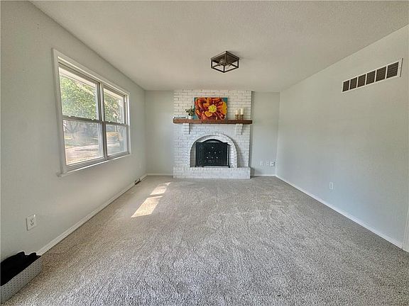 Discover a fantastic opportunity in this charming home, offering 3 spacious bedrooms and 2.5 baths across approximately 1,800 square feet of living space. Enjoy brand new carpet and fresh neutral paint throughout, creating a modern and welcoming atmosphere. The open living room, featuring a wood-burning fireplace, flows seamlessly into a spacious kitchen equipped with white cabinets, stainless steel appliances, a pantry, and a movable island, making it perfect for both everyday living and entertaining. The dining area is generously sized, accommodating family gatherings with ease.