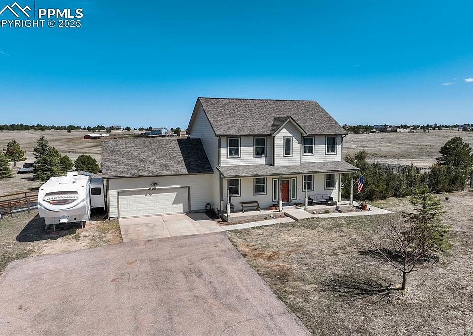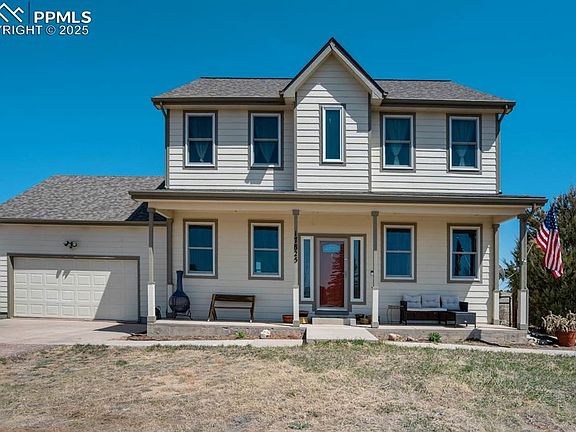Privacy and peacefulness at its best in Peyton Pines! This beautifully maintained home offers updates, charm & plenty of space inside and out. Walking through the front door, you'll immediately notice the vaulted entryway ceilings, arched doorway to the non-conforming bedroom/office & architectural accents. Moving further into the main level you'll find that the kitchen features soft-close cabinets, granite countertops, glass cooktop with 2 induction burners, 2 radiant burners, keep warm burner, convection oven with warming drawer, touch-less faucet, pantry, built-in wine rack, & breakfast nook. Enjoy the large formal dining area, gas fireplace in the living room, main level powder room, & thoughtful upgrades throughout. Upstairs, the spacious primary suite with coffered ceilings, luxurious 5-piece en-suite, soaking tub with Fibo shower/tub surround (no grout!), & walk-in closet with built-in shelving. Two additional bedrooms & a full bath complete the upper level. The basement offers comfort & flexibility with a wall heater for added comfort, 4-person sauna, under-stair storage, large laundry room complete with a effluent laundry filter, plenty of additional storage, & potential for an additional bedroom and bathroom. | Outside, enjoy a 53x20 concrete patio with a 14x14 cedar pergola. 24x12 heated greenhouse with thermostat, & two solar panels. Fenced in vegetable garden with 13 garden troughs (all irrigated). Extended garage includes built-in cabinets & a 12x10 Tough Shed. Fenced back yard with 4 gates, access to the bridle path & zoned for horses! | Enjoy the private well, septic, electric water heater, propane furnace with owned 500-gal tank, owned home & greenhouse solar panel system, new double-hung windows with lifetime transferable warranty, NEW (2025) roof with class 4 hail impact resistant shingles, & new exterior paint. | Located approx. 35mins to Schriever Space Force Base, 30mins to Peterson SFB, 10mins to shopping & 40mins to Colorado Springs Airport.