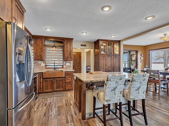 A NORTH BROWN'S LAKE TREASURE! You don't want to miss this tastefully updated 3 Bed, 2 Bath walk-out Rambler with sweeping lake views on a quiet dead-end road. Top to bottom interior updates with an open and comfortable layout. Enjoy entertaining in the updated kitchen - granite countertops, custom cabinetry, & slate appliances. Cozy living room with gas fireplace & dining area with wall to wall lakeside windows. Work from home/office area is sure to impress! Three bedrooms on the main floor, 3/4 bath with tile walk-in shower & main floor laundry room. Lower level boast a family room with walk-out to a fun lakeside entertaining space, wet bar/2nd kitchen area & another 3/4 bath. Desirable elevation to the water, 2 stall detached garage, additional parking spaces, storage shed & a beautifully landscaped yard. Updated and maintained - make this one yours today!