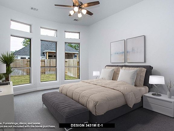 Large front porch welcomes you to this home. Two-story entry leads you to the two-story family room with a wall of windows. Home office with French doors. Formal dining room gives you access through the Butler's pantry to the kitchen. Kitchen has a large pantry and an island with built-in seating space. Morning area has five windows. Primary bedroom features a curved wall of windows. Primary bath had dual vanities, garden tub, a separate glass-enclosed shower and two large walk-in closets. Second level features a media room, game room and secondary bedrooms. Mud room off three car garage. Extended covered backyard patio.