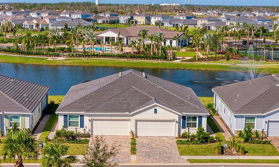 Owner motivated! This stylish villa, completed in 2023, at Star Farms located in Lakewood Ranch sits on a premium lot with views of a large community pond and the brand new amenities’ center where you will find a pool, an exercise room and several courts at your disposal. Of course, if you prefer using the main Resort Club it too has the same features on a larger scale plus an inspirational bootcamp workout room that opens onto a large field. This home comes with many updates: vinyl floors throughout all the bedrooms, plantation shutters on the sliders and bedroom windows, crown molding, and a spa walk-in tub in the master bathroom. This “X-zoned” home requires NO additional flood insurance and came through the most recent hurricanes without a scratch. With its Smart Home technology, your life just got even easier. Painted in designer colors, there’s nothing to do here but move in. This truly is a must-see home!