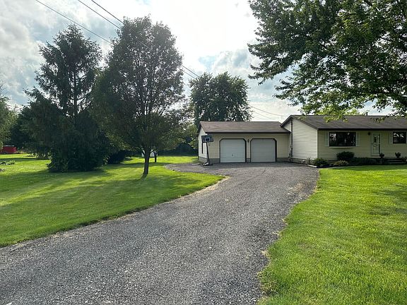 Country living and mature shade trees on a full acre within a few minutes of the city. This home features 3 bedrooms, 2 full baths, a full basement, and an oversized 2-car garage. The large driveway includes plenty of extra parking space and is made up of black top grindings. A large back deck, storage shed, newer carpet, and water softener round out the many extras. Being sold AS IS.