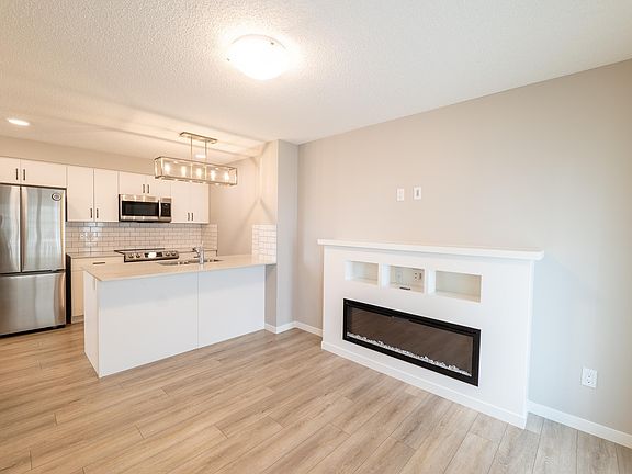 Welcome to this charming 1 bedroom, 1 bathroom townhouse located in the beautiful community of Crystallina Nera, just steps from the lake! This home features a modern open-concept design with stainless steel appliances, quartz countertops, and a cozy electric fireplace – perfect for relaxing after a long day. The spacious primary bedroom offers plenty of natural light, while the well-appointed bathroom adds style and convenience. Enjoy the benefit of your own single car attached garage, providing secure parking and extra storage. Ideally situated close to schools, shopping, parks, and walking trails, this townhouse offers both comfort and convenience in a sought-after neighborhood. Perfect for first-time buyers or those looking to downsize!