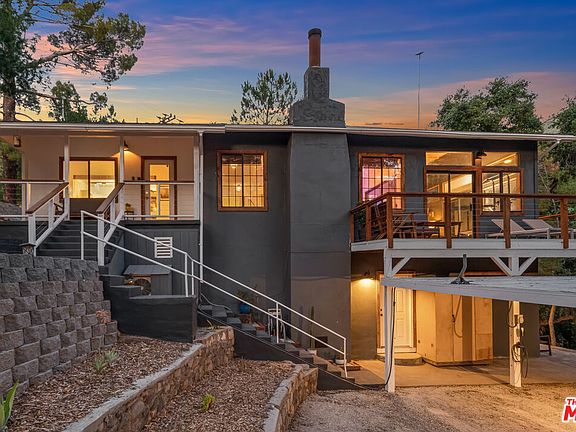 Experience the ultimate blend of serene mountain living and urban convenience at this rare, private creekside sanctuary in the San Gabriel Mountains. This exceptional property, perched on a sprawling 27,708 sq. ft. LCA22-zoned lot, offers breathtaking 360-degree mountain views and is surrounded by thousands of acres of national forest. Feel a world away, yet be less than 15 minutes from both the LA Valley and Santa Clarita. This one-of-a-kind property presents a unique opportunity for income generation and multi-generational living with its thoughtfully designed layout and agricultural zoning. The upper main house features a modern open floor plan with a bright living area, vaulted ceilings, and a romantic fireplace. The gourmet kitchen, a perfect fusion of style and function, boasts walnut butcher block countertops, custom backsplash, a farmhouse sink, and designer brass fixtures. The downstairs guest house is an attached, self-contained unit with its own kitchen, oversized full bathroom, and laundry room. A private exterior entry door makes it an ideal income-generating rental or a secluded space for guests. Alternatively, a convenient interior hatch allows you to connect the two levels for a larger primary residence. The property's LCA22 zoning opens up a world of possibilities for a self-sufficient lifestyle. Recently terraced with multiple levels of retaining walls, the land offers abundant space for vegetable gardens and lush landscaping. A massive, level upper graveled area provides ample room to expand. Use it for additional parking, a storage shed, or leverage the agricultural zoning to create a small farm with the existing chicken and goat pens. This area is also perfect for building a separate ADU, a barn, or horse stables, offering a fantastic opportunity to generate passive income or create a unique living space. Enjoy the outdoor life on one of several decks and porches, or take a refreshing dip in the new cowboy pool. The home features new floors, fresh paint, updated electrical and plumbing, and mini-split AC/heaters in all key living areas. The spectacular, unobstructed views of the San Gabriel Mountains and the gorgeous topography are truly unparalleled in Los Angeles. This is more than just a home, it's an outdoor lover's dream and an incredible investment opportunity.