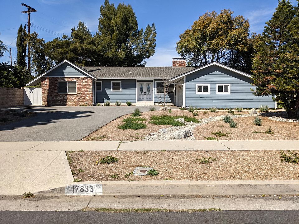 Remodeled mid-century ranch style home with three fireplaces! Sitting on over one quarter of an acre, this gem on a private cul-de-sac has been lovingly cared for by the same family for over 50 years. All new low water landscaping gives the property the best curb appeal you will find. Upon entering, you will find a spacious living room that looks out to an entertainer's dream in the backyard. Kitchen is newly remodeled and features stunning farmhouse stylings with calacatta counters, farmhouse sink and stainless appliances. Flex space adjacent to kitchen with wood panel feature wall could act as dining, office space or playroom. Separate laundry room with wash basin serves as walk-in pantry. Main bedroom has full wall closet and en suite bathroom with beautiful Carrera marble counters. Both bathrooms have double vanities. Two car garage and large driveway provide for all your parking needs. Whole home features original hardwood floors that have been newly refinished and triple pane Pella windows. Cabinets and drawers in hallway provide for loads of storage space. Tankless water heater for endless hot water. The backyard is expansive. In addition to a large greenspace that's perfect for kids and pets, you will find aswing set, children's playhouse and shed for extra storage. There is a patio and large side yard that are perfect for a BBQ and entertaining. Located in Granada Hills Charter School District. Refrigerator & washer/dryer included. Remodeled mid-century ranch style home with three fireplaces! Sitting on over one quarter of an acre, this gem on a private cul-de-sac has been lovingly cared for by the same family for over 50 years. All new low water landscaping gives the property the best curb appeal you will find. Upon entering, you will find a spacious living room that looks out to an entertainer's dream in the backyard. Kitchen is newly remodeled and features stunning farmhouse stylings with calacatta counters, farmhouse sink and stainless appliances. Flex space adjacent to kitchen with wood panel feature wall could act as dining, office space or playroom. Separate laundry room with wash basin serves as walk-in pantry. Main bedroom has full wall closet and en suite bathroom with beautiful Carrera marble counters. Both bathrooms have double vanities. Refrigerator available if requested. Two car garage and large driveway provide for all your parking needs. Whole home features original hardwood floors that have been newly refinished and triple pane Pella windows. Cabinets and drawers in hallway provide for loads of storage space. Tankless water heater for endless hot water. Once you're in the backyard, you will find large side yard that's perfect for BBQ's. The swing set, children's playhouse and luscious green space are perfect for kids. Shed for extra storage space at back of property. Located in Granada Hills Charter School District.