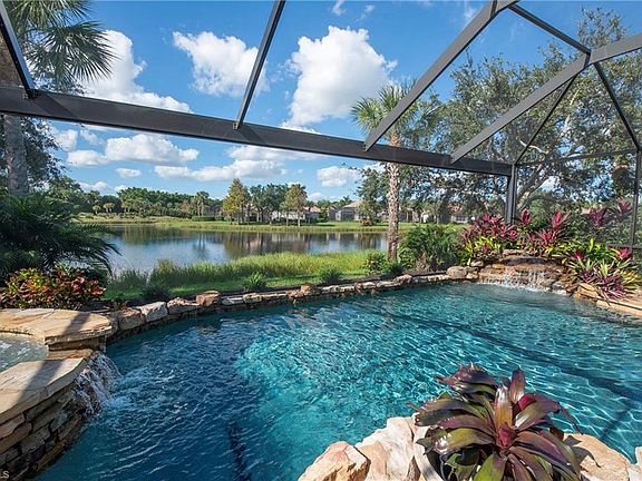 Most up to date home to be offered under 600K in Miromar! Rare one of a kind Updated OPEN Floor Plan with amazing $125,000 custom pool, picture window pool cage overlooking large pond and golf course. All renovations including floors, kitchen, bathrooms, pool, spa and summer kitchen completed past 2-5 years. No carpeting. All stone floors thru out main living areas and wood in bedrooms. All impact hurricane windows and doors not found on homes in Miromar at this price point+ Kevlar see thru electric shutter on lanai to protect your outdoor furniture in a storm. 3 Year Old roof. Outside paint 4 yrs, ac 2015, Tank less HW 2016, Kit 2011+2019, Frig 2011, Oven&Microwave Dec 2020, removed interior walls for open floor plan 2019, Impact windows 2015, self cleaning salt water pool 2015, Not your ordinary spa with custom hydro massage feature, 20 feet of floor to ceiling custom cabinets in garage with real epoxy floor and over 110 sf of ceiling hung storage. Fully furnished excluding Lanai furn, master BR, recliner and gator table. Miromar Lakes is like living at the Ritz with dynamic social scene, White sand beaches on 700 acres of fresh water lakes and the # 1 rated community in the USA