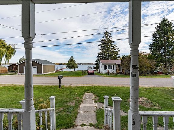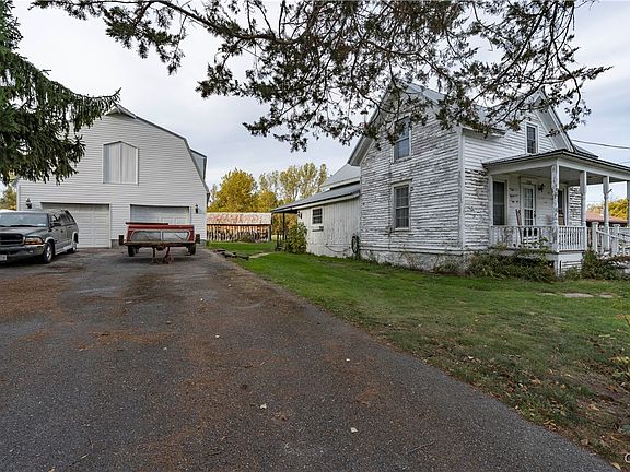 As you walk in the front door the living room is to the left leading to a formal dining room. The kitchen has a nice pantry. Off the kitchen is a laundry room and bathroom. The back door opens to a seating area/mudroom with a wood stove. Up the stairs is a large landing area that could be used for a playroom, office, or seating area. With a few walls it could also be made into a bedroom. The primary bedroom has a large closet. Finishing the upstairs is a second bedroom with a closet and a small half bath. The backyard is oversized and private. A huge 2 story garage measures approximately 30x60. It has insulated doors and oil heat. Upstairs is a large open space that could be converted into living space. A storage shed measuring approximately 24x16 has plenty of space for lawn equipment, toys, storage, and more. The front porch just needs a swing or rocking chair to enjoy the gorgeous view. Newer metal roof provides peace of mind. Call today to schedule your private showing!