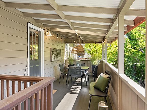 Vintage charmContemporary upgradesWraparound porchNew carpetGorgeous flowering plantsNatural lightWood stove