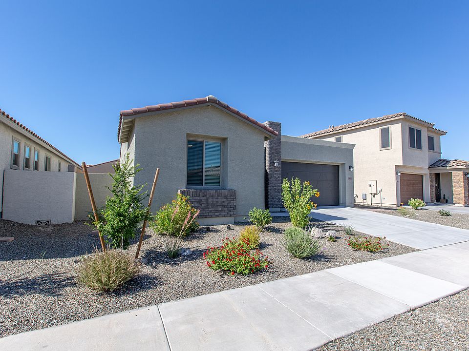 Single story 3 bedroom, 2 bath home located in the Estrella Mountain Ranch community of Goodyear! No Smoking property. 8' sliding glass door to large, covered patio, wood look plank tile in all main areas, upgraded carpet in bedrooms. Kitchen includes 42'' smoke shaker cabinets, hardware, tile backsplash stainless appliances, quartz countertops, tankless water heater, air purification system, Smart Home Automation from thermostat to lighting. Access to 2 HOA outdoor Pools and 1 Lap pool, Gyms, Clubhouse Restaurants/Bar with active adult activities and events throughout the year.