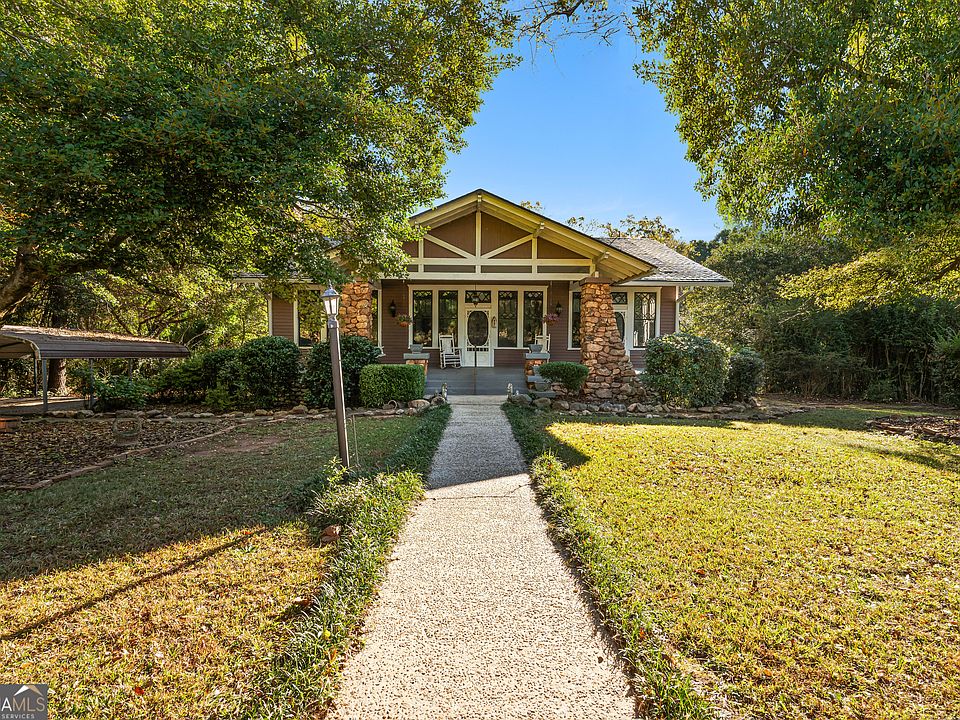 Step back in time with this 1930s Craftsman-style home, rumored to be one of the original Sears Kit Homes. Full of charm and character inside and out. This 3-bedroom, 1-bath property sits on a beautiful 1.5-acre lot, offering the perfect blend of history, space, and potential. From the moment you arrive, you'll appreciate the classic stone pillars, inviting front porch, and the architectural detail that defines this era. Inside, the home features coffered ceilings, four fireplaces, rich wood trim and built-ins that showcase the craftsmanship of its time. The spacious family room and dining room offer a warm and welcoming feel, while the screened-in back porch provides the perfect spot to enjoy quiet mornings or relaxing evenings overlooking the private yard. With 1.5 acres, there's ample room for gardens, outdoor entertaining, or future expansion. Whether you're looking to restore a true piece of history or bring your own creative vision to life, this property offers endless possibilities.