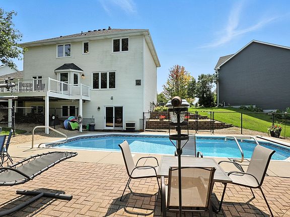 Welcome to this beautifully updated home located on a quiet cul-de-sac, featuring 4 spacious bedrooms and 4 bathrooms. Situated on a generous .4-acre lot, the property provides a private backyard oasis complete with a large in-ground pool, deck, and stunning panoramic views. Inside, you’ll find beautiful hardwood floors throughout the main level and a bright, open-concept kitchen with stone countertops and newer appliances. Another highlight! Brand-new windows throughout the home and a newly installed roof, and new furnace offer peace of mind and energy efficiency. The fully finished basement is designed for entertaining, complete with a bar, foosball table, and direct walkout access to the pool area and fire pit. All four bedrooms are located on the upper level, including a luxurious primary suite with a beautifully updated ensuite bathroom featuring a soaking tub. Move in before summer ends!