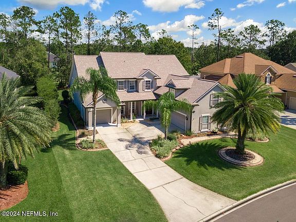 **Price Improvement!!**This 5 bedroom 5 bath home is on a large cul-de-sac lot and sits on a prime golf course location. Hole #16, which is one of the premier par 5's on the golf course! This stunning home features lots of natural light and has spacious rooms to accommodate the whole family. The second story has a unique split layout with a large 5th bonus room that sits over the garage that can be a movie/game room. The loft has a built in desk with cabinets and overlooks the living room. The separate guest room has it's own bathroom to accomodate your guest/inlaw needs. There is a separate office downstairs with French doors leading out to a large screened in Lanai and a gorgeous golf course view. The backyard is large enough for an inground pool. Roof, gutters and airducts were replaced 2 years ago. Luxury vinyl plank flooring on stairs and upper level and brand new carpet downstairs. Come see all this home has to offer! Home is located near an amenity center with tennis courts, playground, pool with splash park and golf course and club house. Community has 2 amenity centers for you to choose from. A schools and Shopping centers within waking distance. Home is located only 20 minutes to NAS JAX and 30 mins to downtown and 40 mins to beaches.