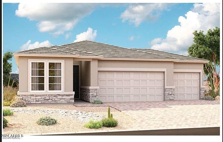 MOVE IN READY!! This Larimar model features 3 bed/ 3 bath with study on a large corner lot bordering common areas with mountain views. Offering a seamless blend of style, comfort and functionality. Included features such as an inviting covered entry; a well-appointed kitchen offering 42'' cabinets, quartz countertops, stainless-steel appliances including gourmet oven range with hood, pot filler a roomy pantry and a center island; an elegant dining room; a spacious great room; an impressive primary suite showcasing a generous walk-in closet and a private bath with cultured marble countertops; a convenient laundry; a covered patio and a 3-car garage. This home also features 9 ft ceilings, 8'6'' paneled interior doors, dual sliding glass door, additional windows, ceiling fan prewiring, recessed lighting throughout, tankless gas hot water heater, soft water pre-plumb, utility sink pre-plumb in garage, additional hose bibs, gas stub at patio and a ton of electrical/tech upgrades! Desert Oasis is a fantastic community showcasing nice parks, playgrounds, sport courts, and a community pool. Located close to the new Frys marketplace with convenient access to the Loop 303 and US-60, nearby Lake Pleasant, Surprise Stadium, Wildlife Zoo, Aquarium & Safari Park in the growing NW Valley. Come view this beautiful home with so much to offer today!