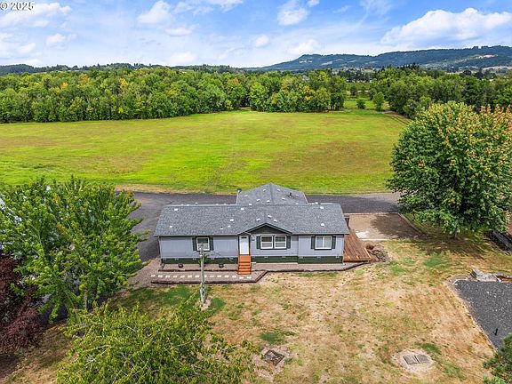 Nestled in the heart of Oregon wine country, this property offers a rare blend of privacy, acreage, and versatility. Set on 14 pristine acres with sweeping territorial views, this beautifully maintained 1,944 sq ft manufactured home features 3 bedrooms, 2 bathrooms, and both a formal living room and a spacious family room—perfect for entertaining or unwinding after a day on the property. Inside, you’ll find a bright, open kitchen with center island, dining area, and ample cabinetry, a primary suite with a large ensuite bath and soaking tub, plus a convenient mudroom to keep the outdoors where it belongs. Three decks wrap the home, providing ideal spots for morning coffee, summer barbecues, or sunset watching. The property is a dream for hobbyists, entrepreneurs, or anyone craving room to roam. A massive 50x60 shop offers endless possibilities for storage, business use, or creative projects, while the RV pad and dedicated pool pad open the door to more lifestyle upgrades. An existing barn is ready for your vision—whether that’s for animals, gardening, or transforming into the ultimate hobby sanctuary. With its flat, usable acreage, this property is equally suited for agricultural pursuits, recreation, or simply enjoying wide-open space. Located just minutes from downtown Newberg, Carlton, and some of Oregon’s most celebrated wineries, you’ll enjoy rural serenity without sacrificing convenience. Whether you’re seeking a peaceful retreat, a place to grow your passions, or a property with space for all your toys and tools, this Newberg gem delivers. Move-in ready, impeccably cared for, and brimming with potential—this is the acreage lifestyle you’ve been waiting for!