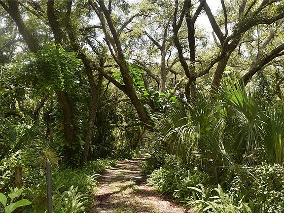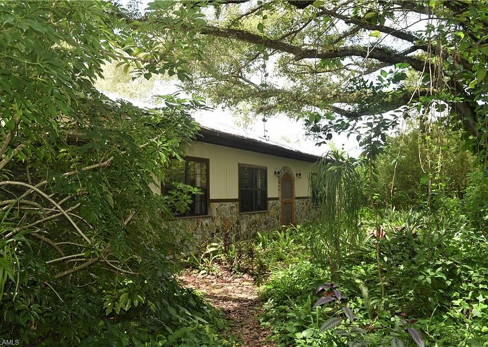 A COZY STONE COTTAGE, nestled in a 2.5 acre OAK HAMMOCK surrounded by loquats, bamboo, tangerine, avocado, cherry, azalea,& fields of Bromeliads. This CHARMING cottage has room to grow, the interior is ADORNED with MAGNIFICENT repurposed hardwoods. Flooring & timbers are wormy Chestnut, yes Chestnut. The front door is solid walnut & the screen door enclosure is Spanish Cedar. Ceiling in the den is Maple and Walnut with a beautiful piece of Birdseye Maple. Niche in the den can be converted to a closet, making this into a bedroom. Den flooring is Ipe (iron wood). Living room offers book shelves made of solid oak. The Kitchen cabinetry is Cherry. Bathroom is under repair and features a bear claw tub. There is room for a shower to be added. The owner was a master carpenter & all this woodwork was done on the property in his workshop/barn. HUGE detached workshop building with 2 floors and smaller shed for mower & gardening tools.METAL ROOF replaced 2018, septic pumped out May 2018, NEW well pump March 2018. If you love living under the canopy of privacy and adore hardwoods YOU WILL love THIS property! THIS IS A MUST SEE!