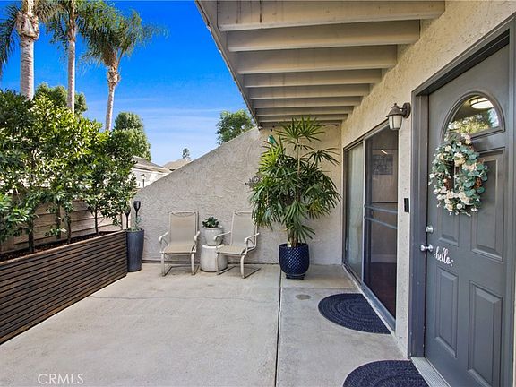 Nestled in the charming Huntington Beach community of Tamarack Village! HIGHLY UPGRADED townhome with a LOW HOA, three-bedrooms, one and a-half-baths,  situated nicely within the middle of the community overlooking the pool and clubhouse, with no neighbors in front or behind! This home has been lovingly cared for by the owners for the past 21 years, truly a rare gem waiting for you to discover! The remodeled kitchen (in 2018) is equipped with elegant Viscount white granite counters, 16x4 inch modern white glass back splash, Pro-American recessed shaker style panel cabinets in Java Cherry (lowers) and Linen (uppers) including under lighting, a Kohler stainless sink, five burner KitchenAid gas range with oven, Samsung refrigerator, Bosch dishwasher, and an under mounted microwave above the stove. The dine in kitchen is adjacent to the living room, and a spacious private front enclosed patio connected by a sliding door which makes it perfect for entertaining!  Tucked around the back side of the living room is the half bathroom, and the direct access to the garage. All three bedrooms are located on the second level, a nice size primary room with two separate closets (mirrored sliding doors), and a balcony overlooking the pool with expansive views of the community! Across the hall from the primary suite, are the two additional bedrooms. The upstairs bathroom was handsomely remodeled in 2022 includes a Carrara marble vanity, bidet toilet, and a floor to ceiling “marble like” large tiled shower with frameless glass enclosure and a long shelf perfect for all of your toiletries! Other upgrades include: Central AC and heat, a separate 220V outlet for EV charging in the garage, dual pane low e-glass windows, plantation shutters, Gambarelli Atlantis Porcellanato plank tile "wood look" downstairs and in both bathrooms, crown molding, larger baseboards, dimmable LED recessed ceiling lights, 40 gallon water heater installed in 2023 with a six yr. warranty, diamond cut and polished cement patio slab, and washer and dryer in the garage are included. Residents of this community enjoy the sparkling swimming pool, complimentary use of the clubhouse and green belts! Water and trash are included with the HOA! Just a short four mile drive to Huntington State Beach where the sea meets the sand! This turnkey townhome is a must have!