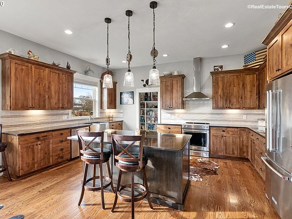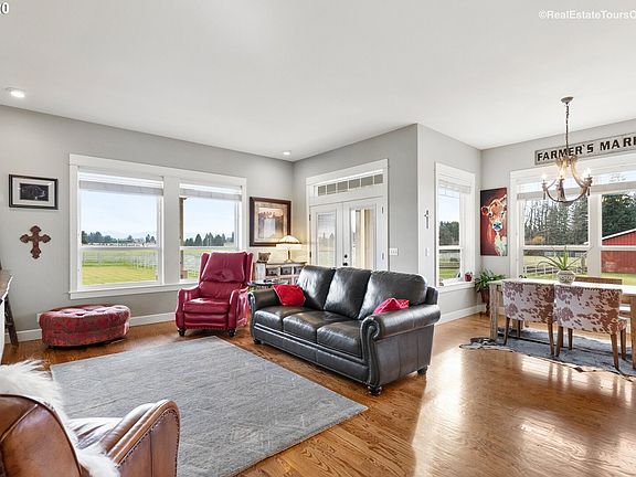 This 22.79 acre property is a horse lover's dream. The one-level home boasts 10 ft. ceilings, custom cabinetry, double oven, central vac, ductless heating and cooling, and an open floor plan with lots of windows with magnificent mountain views. The property also includes a barn (3 horse stalls and an insulated tack room) and an RV/boat garage. The event arena (which brings in additional income for the owner) includes lights, announcer & concession stands, and a covered picnic area.