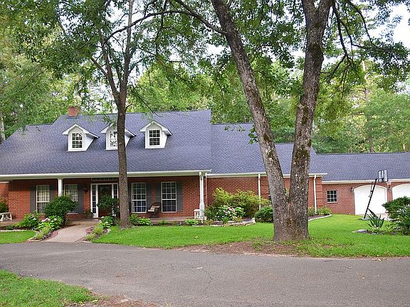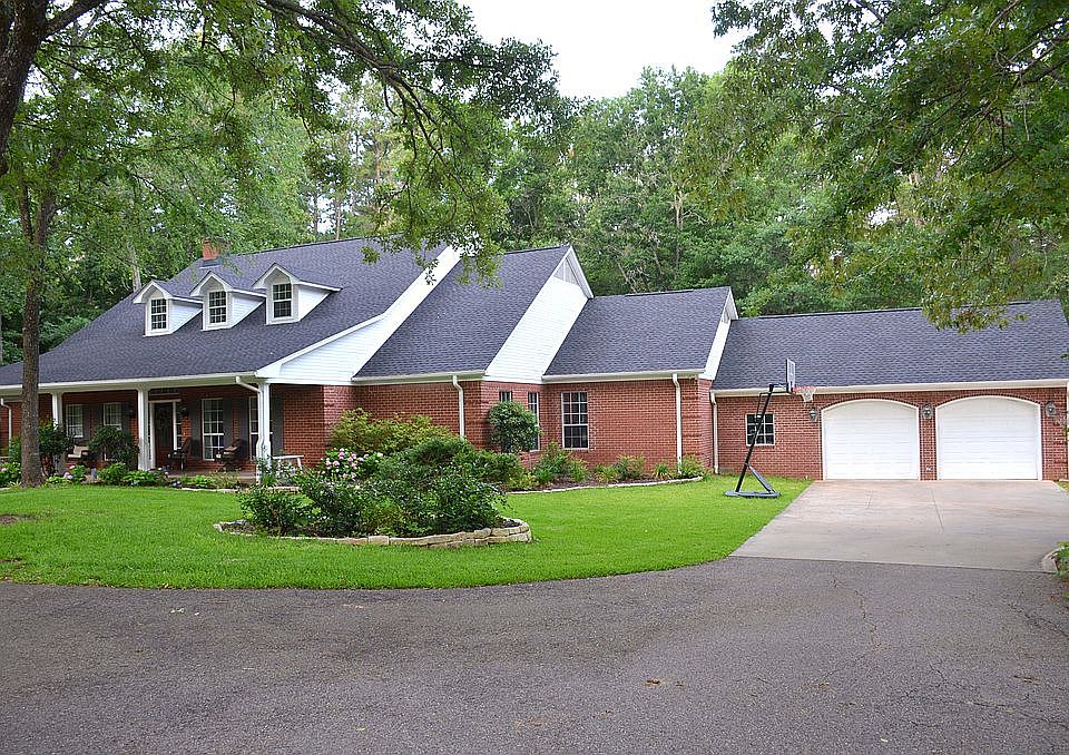 Feel like your in the country while living just minutes from Tyler. This beautiful sprawling, ranch style, 2 story home has a private wooded lot, full of space to spread out. This traditional red brick home sits on just over an acre of land with a circle drive and room to roam. The covered front porch welcomes you into a sunny foyer which opens to the formal front room, as well as the great room. Just off the formal, you will find a lovely home office with bookshelves lining the walls and a sliding barn door. Step from the foyer into the great room which is truly grand! This home boasts a huge recently remodelled kitchen with new cabinetry, under cabinet lighting, double islands, double ovens, double sinks, a gas cooktop, and other matching KithenAid appliances. The breakfast nook just off the kitchen is large enough to house a full size kitchen table and then some! The oversized family room is open to the kitchen with beautiful built-ins to house all your electronics, and a gas fireplace. To the left of the family room, you will find 2 guest bedrooms with walk-in closets and a guest bathroom. To the right of the family room sits the primary bedroom, complete with another wall of built-ins and another gas fireplace. The primary bathroom has a jetted tub, shower, water closet, and his and hers sinks and closets. Behind the kitchen, the laundry room is conveniently located with plenty of storage! Across the hall, you will find a cute little half bathroom. This hallway opens up to a gigantic bonus room with access to the backyard and garage. There is a desk area located beneath the stairs with plenty of storage for another home office. Upstairs you will find a playroom with a built-in entertainment center and a windowseat with storage beneath. Off the playroom are 2 bedrooms, both with windowseats and storage which share a huge walk-in closet and jack-and-jill bathroom. The entire home was freshly painted in 2019 in a neutral grey with bright white trim, doors, and cabinetry, along with new flooring in the main floor living areas. Both water heaters are less than 5 years old. All the lighting is updated, and the home is equipped with Smart Home Thermostats, and a NEW ROOF was put on in 2020. The oversized 2-car garage has 2 storage rooms with shelving and a heated and cooled shop with counterspace and storage built in. The backyard is truly private, surrounded by beautiful trees. Enjoy nights around the firepit, while your kids play on the playground. There is a covered patio, as well as an open patio, and an additional pad which would be perfect for a hot tub. In the back of the yard, you will find a 10'x16' storage shed big enough to house all your outdoor equipment. This house is one of a kind!