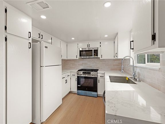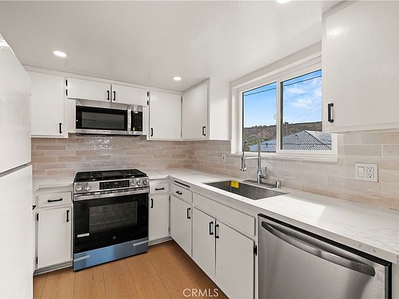 Come home to the best value in Santa Clarita. This cozy condo has been recently renovated and looks great. This is a quiet complex just off of Sierra Hwy and ready for you to call home. Located on the 2nd story so no neighbors above this condo is an coveted end unit. Luxury wide plank vinyl wood looking flooring has been installed throughout as well as brand new stainless steel appliances in the kitchen. The kitchen also features quartz counter tops, custom back splash, new stainless steel sink and built in microwave. The living room and the master bedroom both open up to a large balcony thru sliding glass doors. The bathroom has a newer custom vanity installed with lighted mirror and is next to a large walk in closet. This condo is not going to last. Great to live in or for investment.