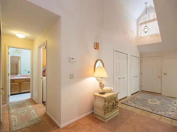 Welcome to this lovely Cluster Ranch home on a quiet cul de sac street. Light, bright and open concept with vaulted ceilings and skylights. Family room is comfy, cozy and has a brick fireplace. Kitchen includes the appliances, dining area that overlooks the deck and rear yard and plenty of cabinets. Newer furnace and hot water tank. Central air, 2 car garage. Recreation and maintenance fee.