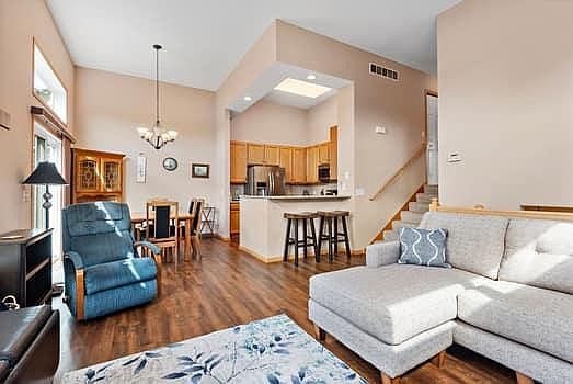 THE KITCHEN FEATURES: GRANITE COUNTERTOPS, GRANITE BREAKFAST BAR AREA, AND STAINLESS STEEL APPLIANCES & 42 INCH CABINETRY. THE LIVING RM, DINING RM & KITCHEN FEATURES GORGEOUS ENGINEERED FLOORING & 12 FOOT CEILINGS. THE PRIMARY BEDROOM IS SPACIOUS W/WALK-IN CLOSET & 3/4 BATHROOM. THE 2ND BEDROOM & FULL BATHROOM COMPLETE THE UPPER LEVEL! WALK THROUGH THE FRENCH DOORS TO LOWER LEVEL FAMILY ROOM/OR 3RD BEDROOM. YOU WILL HAVE THE CONVENIENCE OF THE LAUNDRY CLOSET ACROSS THE HALL WITH THE 1/2 BATH CONVENIENTLY LOCATED AT END OF HALLWAY. YOU WILL FIND IT IS LOCATED CLOSE TO SHOPPING, RESTAURANTS, PARKS & TRAILS FOR BIKING AND HIKING! COME & SEE! BE SURE TO CHECK OUT THE VIRTUAL TOUR OF THIS GREAT HOME!