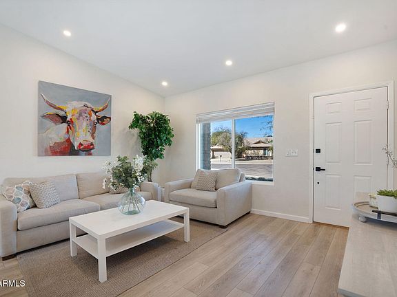 Welcome to this stunning fully remodeled 1,113sf home in North Phoenix, backing to the award winning Paradise Valley Golf Course on an oversized 9,000+sf cul-de-sac lot with covered RV parking for recreational vehicles & NO HOA. Unlike a quick flip, this home was professionally renovated for a primary occupant, ensuring quality craftsmanship & attention to detail throughout. Step inside the 2 bedroom, 2 bathroom home from the professionally landscaped and lit front yard to the new luxury vinyl plank flooring throughout, fresh interior and exterior paint, and a completely redesigned kitchen featuring custom cabinetry, granite countertops, and stainless steel appliances - opening to the spacious greatroom floorplan with views of the 4th hole of the public golf course. The layout complete... ...with remodeled guest bedroom and bath has been thoughtfully upgraded to include the addition of a new primary ensuite with a glass-enclosed shower and new tile, vanities & fixtures plus a large walk-in closet with permitted additional square footage. The exterior boasts new siding, an extended covered patio, a fully fenced backyard, a storage shed, and a covered structure for RV or boat parking all with newer main house roof, new doors and windows, and a new AC unit with ALL upgrades done inside the home in the last 3 years. Nestled in the same neighborhood as Paradise Valley Community College, PV High School, the PVCC fitness center, and Paradise Valley Park, this home offers unbeatable access to world-class golf, Moon Valley hiking and biking trails, Lookout Mountain, and Cave Creek shopping and exploring. Plus, with easy access to the 51 freeway, commuting to anywhere in the Valley is a breeze. This move-in-ready home sits on one of the best lots in the neighborhood, with plenty of space to expand, add a pool, or create your dream backyard oasis. Don't miss this rare opportunityschedule your showing today!