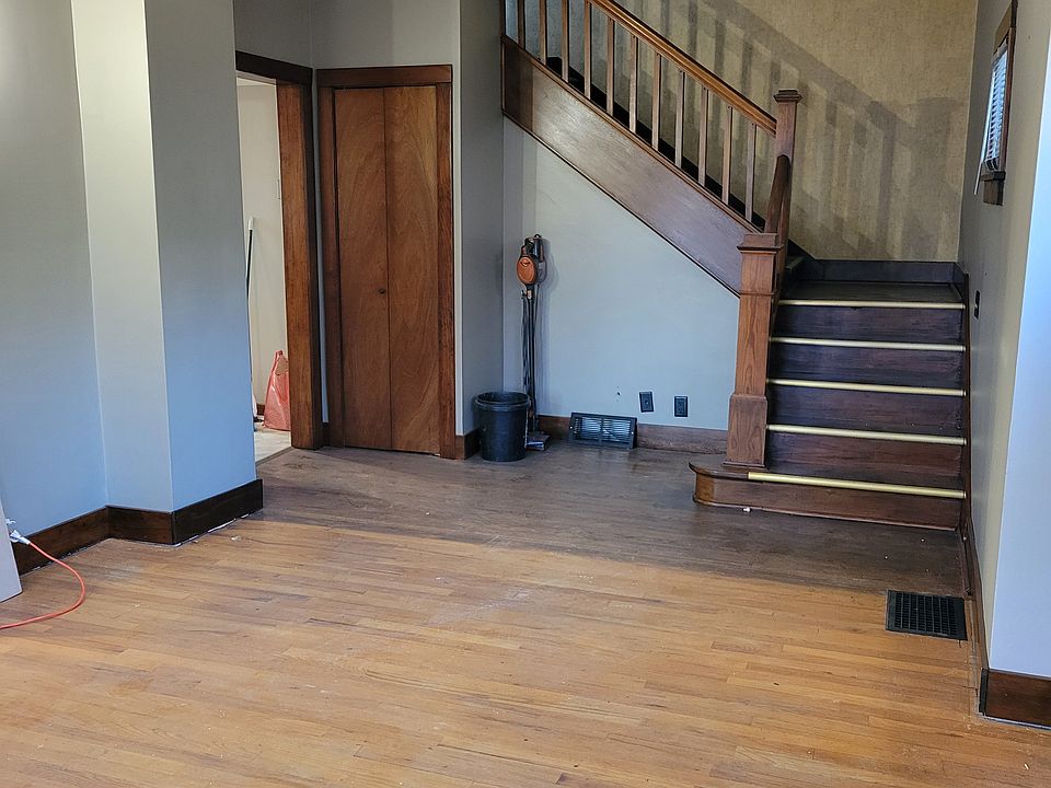 Some hardwood floors are in the process of being refinished, so pics show work being finished.