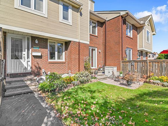 Discover one of the most spacious and private residences in Club Citadelle, a unique opportunity that doesn't come around often. This isn't your standard stacked condo, it's a true two-storey townhouse with no units above or below, offering exceptional privacy and a house-like feel. Step into your private fenced yard, where a charming garden and inviting seating area create the perfect outdoor retreat. Inside, you'll find 1,170 sq. ft. of thoughtfully designed living space across three levels, with 2 bedrooms and 2 bathrooms. The main floor boasts a bright, open-concept layout with updated finishes, crown moulding, and a refreshed kitchen featuring resurfaced cabinets, an upgraded sink, and ample storage. Stay cool with central A/C, and enjoy cozy evenings in front of the wood-burning fireplace. Upstairs, two generously sized bedrooms share a full bathroom, including a primary with a walk-in closet and additional hallway linen storage. The finished basement expands your options with a versatile recreation room ideal as a guest space, home office, or third bedroom plus another walk-in closet, laundry area, and cold storage. Recent improvements include new windows, roof, and fencing within the past five years, plus enhanced attic insulation added in July 2025. Residents enjoy access to Club Citadelles resort-style amenities: a swimming pool, tennis courts, fitness room, clubhouse, and BBQ area. A dedicated parking spot is just steps from your entrance. Conveniently located close to public transit, schools, parks, restaurants, and shopping.