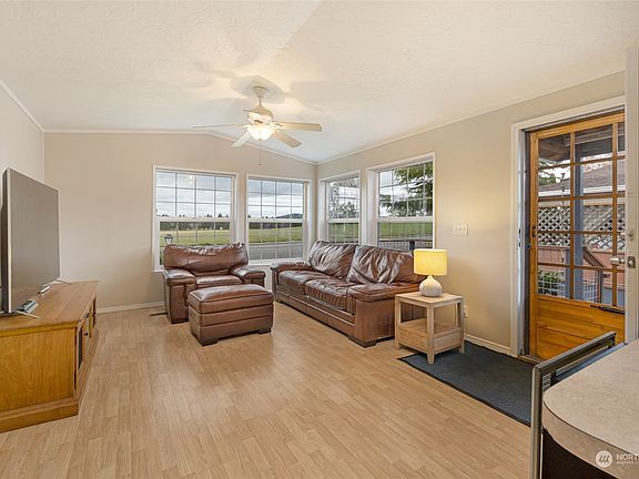 Welcome to 1785 Douglas Road #57, a charming move-in-ready home in the sought-after community of The Oaks on San Juan Island. This 2-bedroom, 1-bathroom home features a versatile bonus room off the side, offering plenty of space for living, working, or relaxing. The attached one-car garage doubles as a workshop or provides ample storage for all your needs. Step outside to enjoy the fenced back and side yards, perfect for pets, gardening, or outdoor relaxation. Inside, the home is fresh and inviting with recent interior paint. Nestled in a sunny location, this unit boasts a west-facing view over the open space common land, perfect for soaking up those sunsets. Experience island living in this peaceful and well-maintained mobile home park.