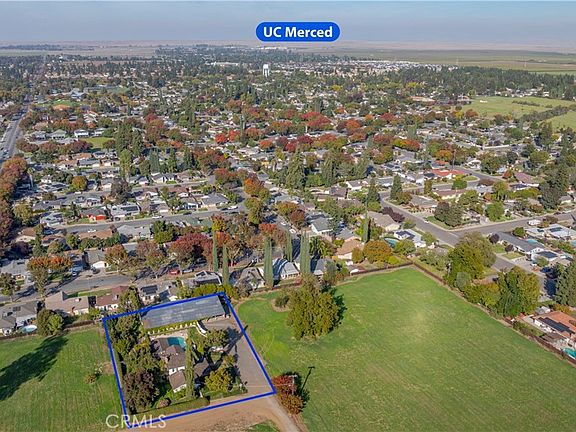 ABSOLUTELY GORGEOUS!! OLD WORLD CHARM LOCATED RIGHT HERE IN THE HEART OF MERCED! This property would make a wonderful Bed & Breakfast or a fabulous home with plenty of room for kids to roam! OR A GREAT WEDDING/PARTY VENUE! Built in 1915, updated in 1961.The home itself still has the original wood crown molding with a beautiful wood fireplace & mantel! Home located off the beaten bath in a county pocket within the city limits with close proximity to shopping, schools & UC Merced! The property features 3 large bedrooms, 5 bathrooms with the Primary ensuite downstairs & is located on approximately 3/4 of an acre. The kitchen has been updated with a Bosch dishwasher, double ovens and even offers a vegetable sink! Proceed up the gorgeous stairs with the beautiful original wood railing, into a very unique bathroom that hosts a soaking tub & a huge walk in shower & sink! The two large bedrooms upstairs have the original wood windows with wonderful views of the property! Now step outside onto the pavillion where you'll find a bar, a 1/2 bath & a changing room. The pavillion overlooks the beautiful pool & additional patio area for barbecuing & entertaining! The shed/carport/barn measures approximately 100' x 50', all of which is covered. Approximately 25' of the width of the shed is enclosed and can be secured. There are 3 carports. What can I say...this home is one of a kind! They don't build quality like this anymore!!!