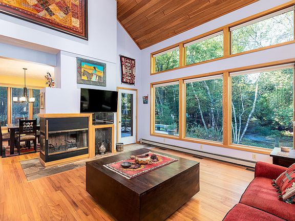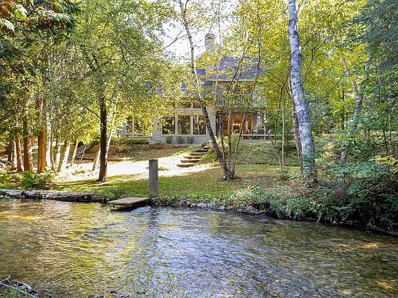 Welcome to your own slice of Northern Michigan paradise! Nestled on over 2.5 peaceful acres with 300 feet of private frontage on Herring Creek, this stunning 3-bedroom, 2-bathroom home offers a rare opportunity to own both sides of the creek ensuring complete privacy and creating a true sanctuary for nature lovers, anglers, and those seeking serene seclusion. Enjoy exceptional fishing, active wildlife, and peaceful creekside walks that lead directly to Lower Herring Lake, all just around the corner from the public boat launch. Whether you're entertaining or unwinding, the expansive wraparound deck overlooking the creek sets the perfect stage to enjoy the natural beauty that surrounds you. Inside, the home is filled with natural light and sweeping views from nearly every room on the main floor, thanks to large windows that blur the line between indoors and out. Beautiful hardwood floors run throughout, connecting a thoughtful floor plan. You will enjoy a cozy living room with a wood burning fireplace, open dining area with walkout access to the deck and a spacious kitchen featuring granite countertops, a large island for gathering, custom cabinetry and stainless-steel appliances. Two guest bedrooms both offering views of the creek and access to the back deck share a full guest bath. Upstairs, the loft flex space is perfect for a reading nook, office, or lounge, while the private primary suite boasts its own balcony overlooking the creek, a walk-in closet, and a spacious en-suite bath. Additional highlights include a heated 2-car attached garage and a 24'x32' pole barn with 220V power perfect for storing your seasonal toys, tools, or outdoor gear. This home is set in one of the most desirable areas of Northern Michigan. Just minutes from Lake Michigan, Upper and Lower Herring Lakes, Crystal Lake, the M-22 Scenic Drive, hiking and biking trails, The City of Frankfort providing many quaint shops, restaurants and a short drive to Sleeping Bear Dunes National Lakeshore.