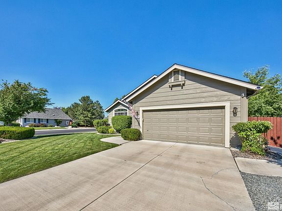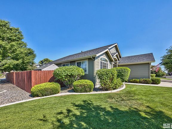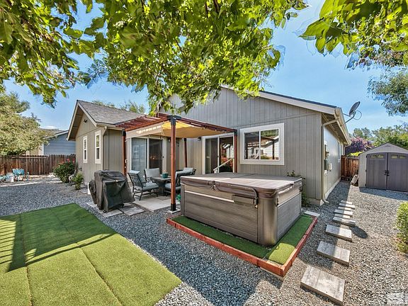 Welcome Home! In the sought-after Winhaven community of Minden, NV! This charming residence, built in 1998, offers a comfortable and inviting living space that is sure to impress. With its 3 bedrooms, 2 bathrooms, a spacious 2-car garage, and additional parking pad, this home provides the perfect combination of functionality and style., Step inside and be greeted by a generous 1,680 square feet of living space. The interior boasts wide halls and an open floor plan that promotes seamless movement and a sense of spaciousness. The home features a laundry room, ensuring convenience and ease in your daily routines. A new roof installed in 2022 provides peace of mind, offering years of worry-free living. The exterior of the house has also been freshly painted in 2022, giving it a modern and updated look that will catch your eye. As you approach the property, you'll notice the meticulously maintained mature landscaping that enhances the curb appeal. The kitchen is a chef's delight, featuring new stainless steel appliances that are as stylish as they are functional. The refrigerator, washer, and dryer are all included with the property, making moving in a breeze. The corner lot location of this home offers privacy and an abundance of natural light. The outdoor space is perfect for relaxation and entertaining, with a hot tub/spa that will remain with the property as well as a Tuff-Shed. Picture yourself unwinding after a long day in the soothing waters, surrounded by the serenity of your own backyard retreat. Pergola in backyard in remains with home but Sellers will be taking the sunshades that are on it. The Winhaven community is known for its nearly 13 acres of lush greenery, ponds, walking paths, friendly environment and is conveniently located near shopping, dining, and recreational opportunities. With its combination of modern updates and thoughtful features, this home provides the ideal blend of comfort and style. Winhaven offers a secure RV parking lot for a nominal fee. Very convenient for your weekend warriors. Small dog at showing. Please do not let him out. Thank you.