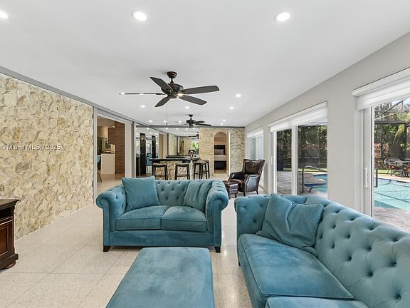 Your own slice of paradise! Located in "Enchanted Place," this cul-de-sac residence truly sparkles, especially during the holiday season when the entire street transforms into a dazzling winter wonderland. The home's 4 bedrooms and 2 bathrooms offer ample space. The living room features a bar and stone walls, with stunning views of the pool, making it an ideal space for relaxation & entertaining. A beautiful kitchen, formal and informal dining, & separate laundry room The outdoor spaces make this property a true tropical oasis. Unwind in your screened-in pool patio area or enjoying an alfresco shower under the sky. With 2 additional patios, there's no shortage of private spots to bask in the Florida sunshine. Seize this rare opportunity to call this breathtaking sanctuary yours.