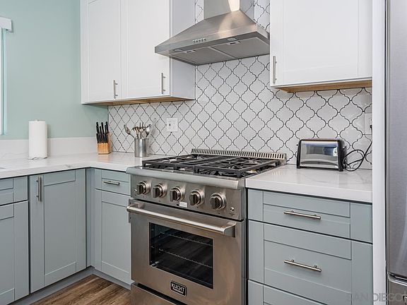Stunningly remodeled 3-bedroom 2-bathroom with a pool, extremely versatile. This house has a large great room with additional half bath that can easily be a media room, man cave, or granny flat/ADU for your parents or in-laws. Modern floor plan with open concept kitchen, Calcutta quartz counter-tops, Moroccan tile backsplash, new cabinets with soft close doors, new stainless steel appliances, high-end professional range & convection oven, perfect for chefs or those who love to cook. Coronado beach vinyl plank flooring throughout, new dual pane windows, large family room & country deck with views to the ocean, bay, Coronado bridge and downtown. Great outdoor entertainment area, and pool. House is on solar!