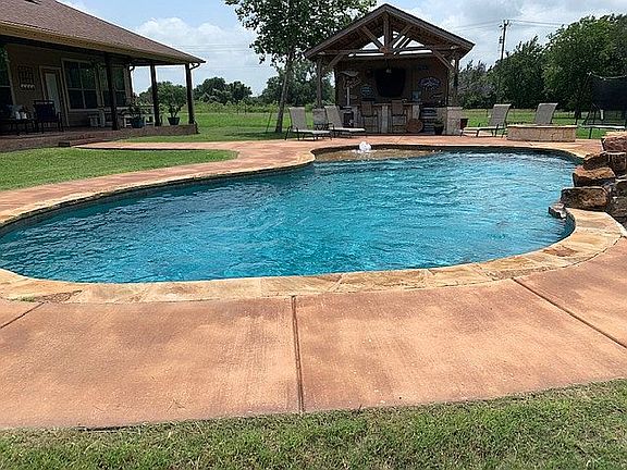 This is a beautiful one story, four bedroom two and 1/2 bath on approximately 3 acres located in Adkins, TX. The house is 2653 sq. Feet of living space with a pool, outdoor cabana and fire pit. There is a 30x40 shop with attached game room and 1/2 bath. RV awning with 30 amp outlet attached to the shop. Some recent updates include new roof, exterior paint, solar panels (average electric bill is $93 per month), water heater, garage door opener and septic clean out. Convenient location, 20 minutes to downtown San Antonio, Seguin or The Forum.
