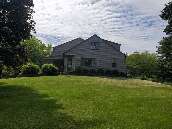 Large country 2 story home with rustic decor and panoramic views sitting on 5 gorgeous acres and surrounded by 10 more fully treed acres. Home was originally built in 1868 (limestone basement) but remodeled in 1975 and again in 2018. Loads of built-ins and charm; rooms extremely large; 2 outbuildings (1 has furnace); partially fenced yard area around house. Updates include windows, roof, siding, kitchen counters, backsplash and floor; water heater, boiler. Older appliances work but "as is". There is a nice sized deck on rear of house; convenient mud room; covered side porch overlooks mature treed acreage. Perfect location in rural setting. Sold "as is". Agent related. The propane tank is a rental. Cost is $50 per year.