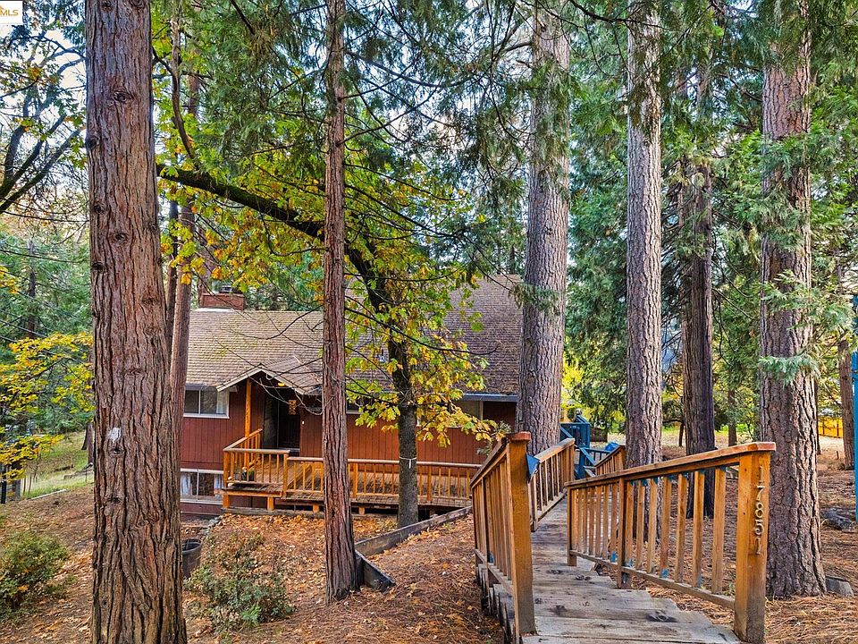 WELCOME TO BRENTWOOD PARK - A SPACIOUS MOUNTAIN RETREAT JUST MINUTES FROM DOWNTOWN TWAIN HARTE! This versatile 4-bedroom, 3-bathroom home with bonus room offers a flexible three-level layout ideal for multi-generational living, remote work, or extra space to relax and create. The main level includes a welcoming living room with tall ceilings and a wood-burning stove, an open kitchen with gas range, a dining area, sunroom/office with deck access, two bedrooms, and a full bath. Upstairs features a private primary suite with its own deck, walk-in closet, and ensuite bath. The lower level adds even more living space with a large second family room, wood stove, wet bar with sink, laundry area, full bath, one bedroom, and a bonus room with closet - perfect for guests, hobbies, or storage. The lower level features a durable finished concrete skim coat over the subfloor - durable and functional with storage space. Outside, enjoy a fenced backyard with garden space, dedicated dog run, wide parking pad, and plenty of street parking. A new instant tankless water heater adds modern comfort. Just under 2 miles to Twain Harte’s shops and dining, and 21 miles to Pinecrest Lake and Dodge Ridge Ski Resort - offering year-round enjoyment and strong full-time, vacation, or rental potential.