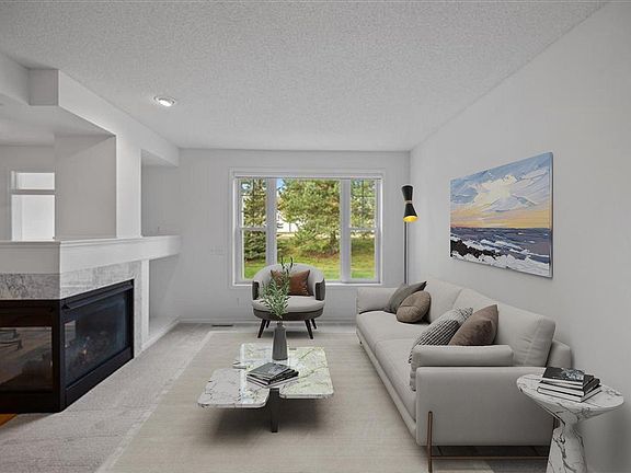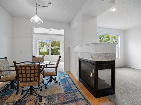 Highly desired Cornerstone Commons 55+ community! Enjoy one-level living with a bright open layout, oversized windows with Hunter-Douglas roller shades, and a vaulted sunroom leading to the 12x12 patio. Cozy 3-sided fireplace warms the kitchen, dining, and living areas. Primary suite features dual vanities, jacuzzi tub, and separate shower. New carpet throughout entire upper level and stairs! Spacious lower level with a large family room, 3rd bedroom, 3/4 bath, and a bonus Finlandia Sauna - perfect for