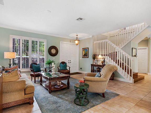 Impeccable home in Pelican Sound, a gated subdivision within SilverLakes community! Pride of ownership is evident as soon as you drive up to this 2 story, 4 bedroom 2-1/2 bath, 3 car garage home! Manicured landscaping in front and backyard. Double door entry. Spacious living areas with lots of natural lighting. Crown molding in main living areas. Master Suite features sitting area w/ built in office. Custom Plantation Shutters in living room, dinette and 3 bedrooms, which adds style and a perfect touch. Classical finished archway to formal dining room. Gorgeous wood on stairs and landings. Remodeled kitchen with high quality granite counter tops, stainless steel appliances and double ovens are a plus! Surround sound throughout the home. Custom garage and Accordion Shutters on all windows!