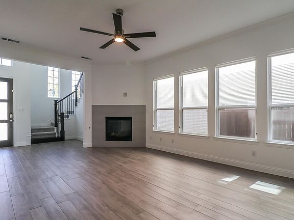 Gas fireplaceHardwood floorBrick and stone elevationSpacious family roomStainless appliancesWhite quartz counter topsSoaker tub