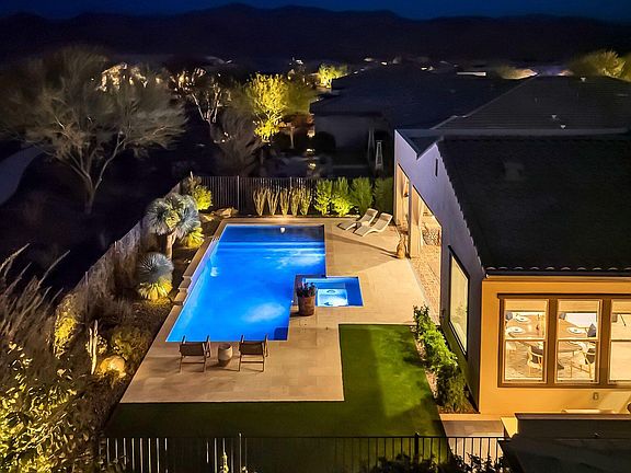 THIS GORGEOUS HOME WAS BUILT FOR ENTERTAINING WITH ATTENTION GIVEN TO EVERY DETAIL. The home was meticulously designed in every aspect to embody Arizona indoor outdoor luxury living. Upon entry, you arrive in the open concept great room and kitchen, which are loaded with upgrades and high-end finishes. The primary suite is your own private oasis, with direct access to the patio and your luxurious primary bathroom. Your guests will love their own ensuite bedroom in this popular floor plan. The heart of the home appears as you walk through the sliding glass doors to the massive, covered patio with a built-in brick fireplace and TV, the extended travertine patio with heated pool & spa, and a complete outdoor kitchen with BBQ, pizza oven and beverage fridge. This home is the total package! Experience Trilogy at Verde River, a stunning resort style community nestled against the beautiful Tonto National Forest. The amenities at Verde River are spectacular. The Community boasts an 18-hole Championship Golf Course with a picturesque driving range, putting green, and separate chipping/pitching practice areas. One visit and you will understand why the PGA Southwest Section selected Verde River Golf & Social Club to host the AZ Senior Open and AZ Match Play Championships in 2020, 2021 and 2022. The active lifestyle amenities continue with pickle ball and tennis courts, with Clubs designed for social or competitive play. Adjacent to the sport courts for your convenience are bocce ball courts and an open grass area for social gatherings.