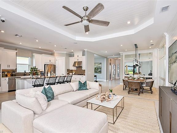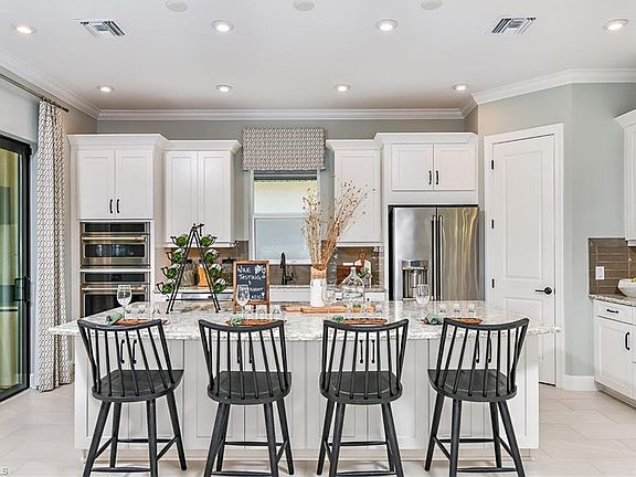MLS# 225038803 REPRESENTATIVE PHOTOS ADDED. New Construction ~ Ready Now. Your dream home is waiting at Esplanade Lake Club, a stunning lakeside community in Fort Myers, Florida. This community blends resort-style living with endless opportunities for fun and relaxation, all set against the sparkling backdrop of Lake Como—a boater’s paradise. Take a leisurely stroll along the waterfront trail or soak in the views from the floating pier. Lounge on the beach, launch your kayak, or set sail from the community dock for an adventure on the water. The community is designed to inspire an active, vibrant lifestyle. Amenities include a resort-style pool, the Bahama Bar and Grill for casual dining, a spa room for massages, and sports courts for tennis, pickleball, and bocce ball. Residents can enjoy pet parks, paddleboard and kayak launches, and versatile spaces for gatherings, gaming, and events. Come explore this amazing community today, where every day feel like a vacation! Meet the Lazio, a thoughtfully designed home with stylish upgrades throughout, including quartz countertops, gorgeous cabinets, and impact windows. Off the foyer, you’ll find two secondary bedrooms, one with its own en-suite, a shared full bath, flex room, laundry area, and garage entry. The kitchen features a large island and opens to both dining areas and gathering room, where a sliding glass door leads to the covered lanai for easy outdoor living. The private primary suite at the back of the home includes a bay window, dual vanities, a spacious shower, water closet, and a large walk-in closet. Structural options added include: Gourmet kitchen, casual dining extension, bay window at primary suite, tray ceiling at primary suite and gathering room, extended covered lanai, 10' ceilings, and 4' garage extension.